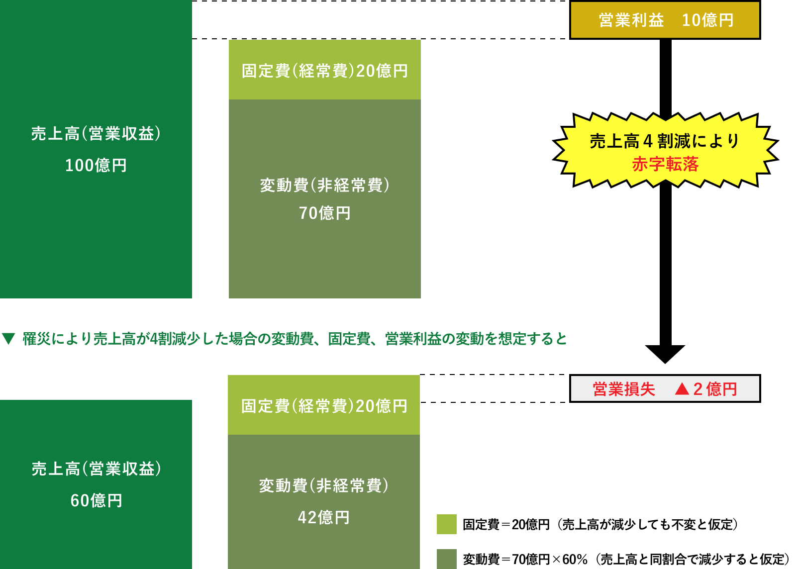 「事業中断による損害」は売上高と営業利益の低下および固定費の継続支出による赤字を生み出し、企業経営・財務を圧迫する可能性があります。