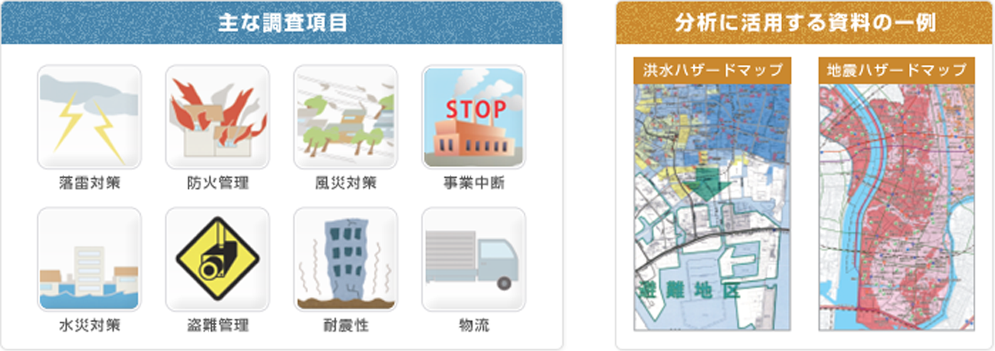 弊社の専門スタッフが、主要事業所のリスクサーベイを行います。